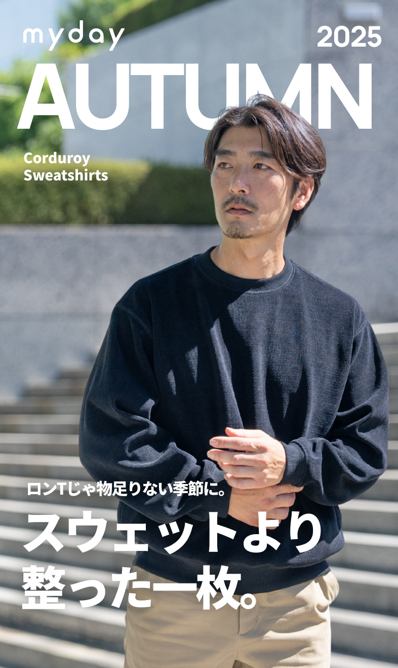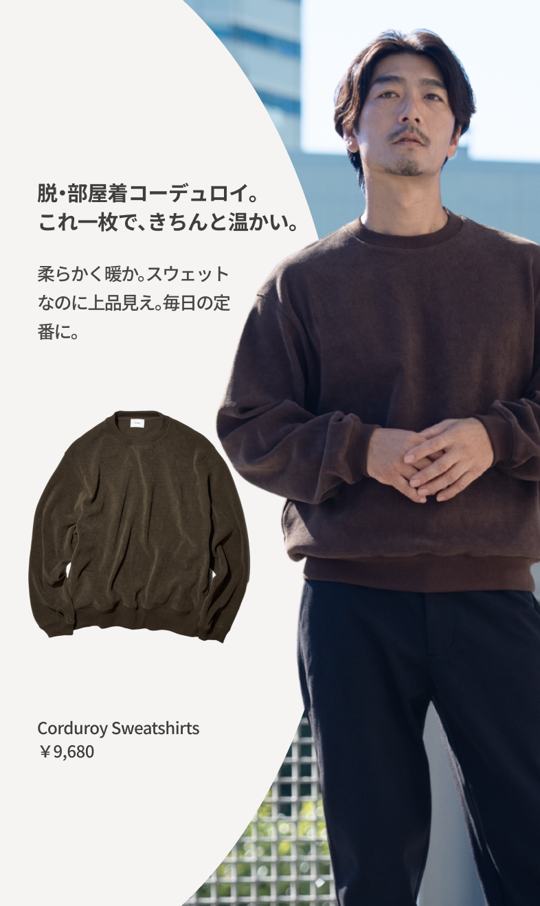 秋冬の定番素材「コーデュロイ」を使い、リラックス感のあるスウェットシャツをつくりました。