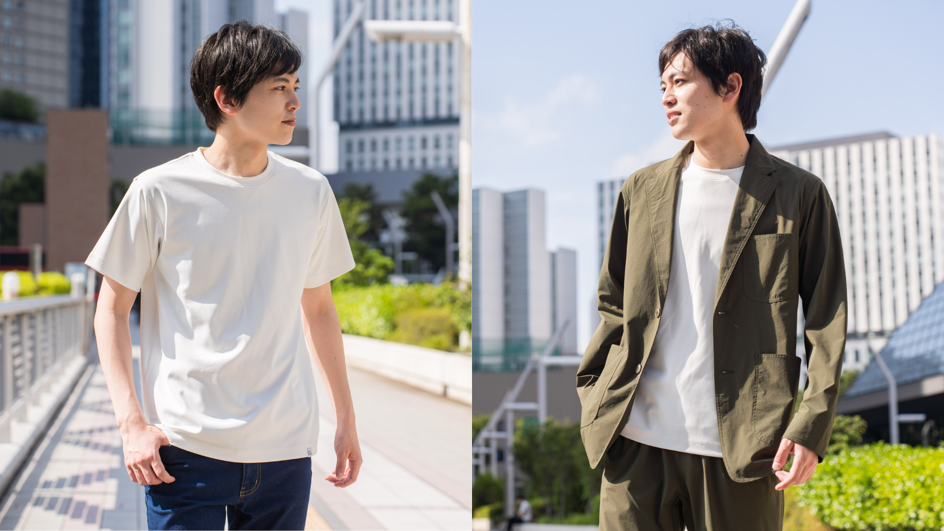 Tシャツを主役にしたシンプルなコーディネートはもちろん、ジャケットのインナーとしても活躍します。年齢やスタイルを問わず、使いやすく汎用性の高いTシャツです。