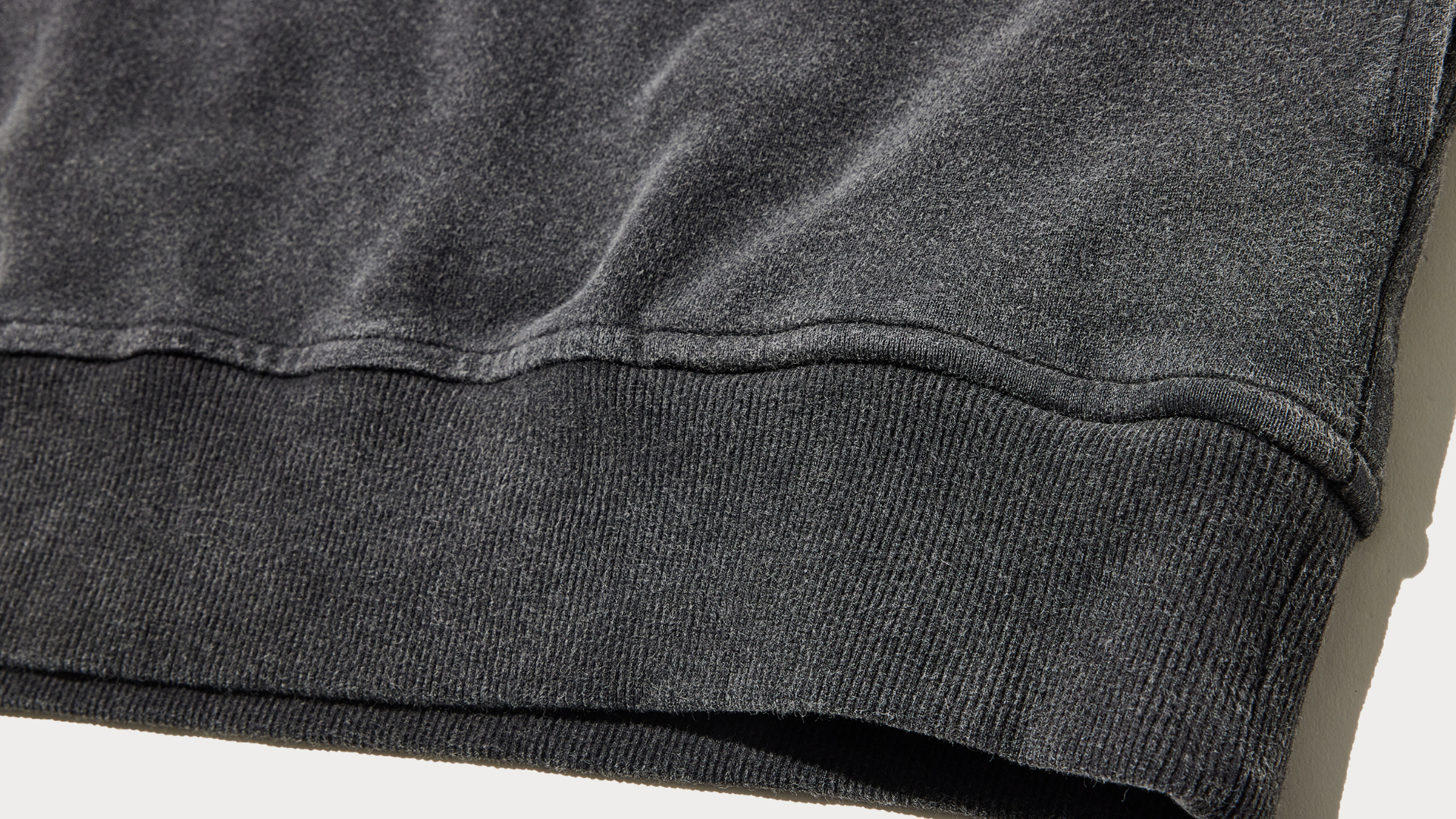 味わい深い色合いのウォッシュ加工が目を引くスウェット。お洗濯時の色落ちが少なく縮みにくいため、同じ風合いを長くお楽しみいただけます。