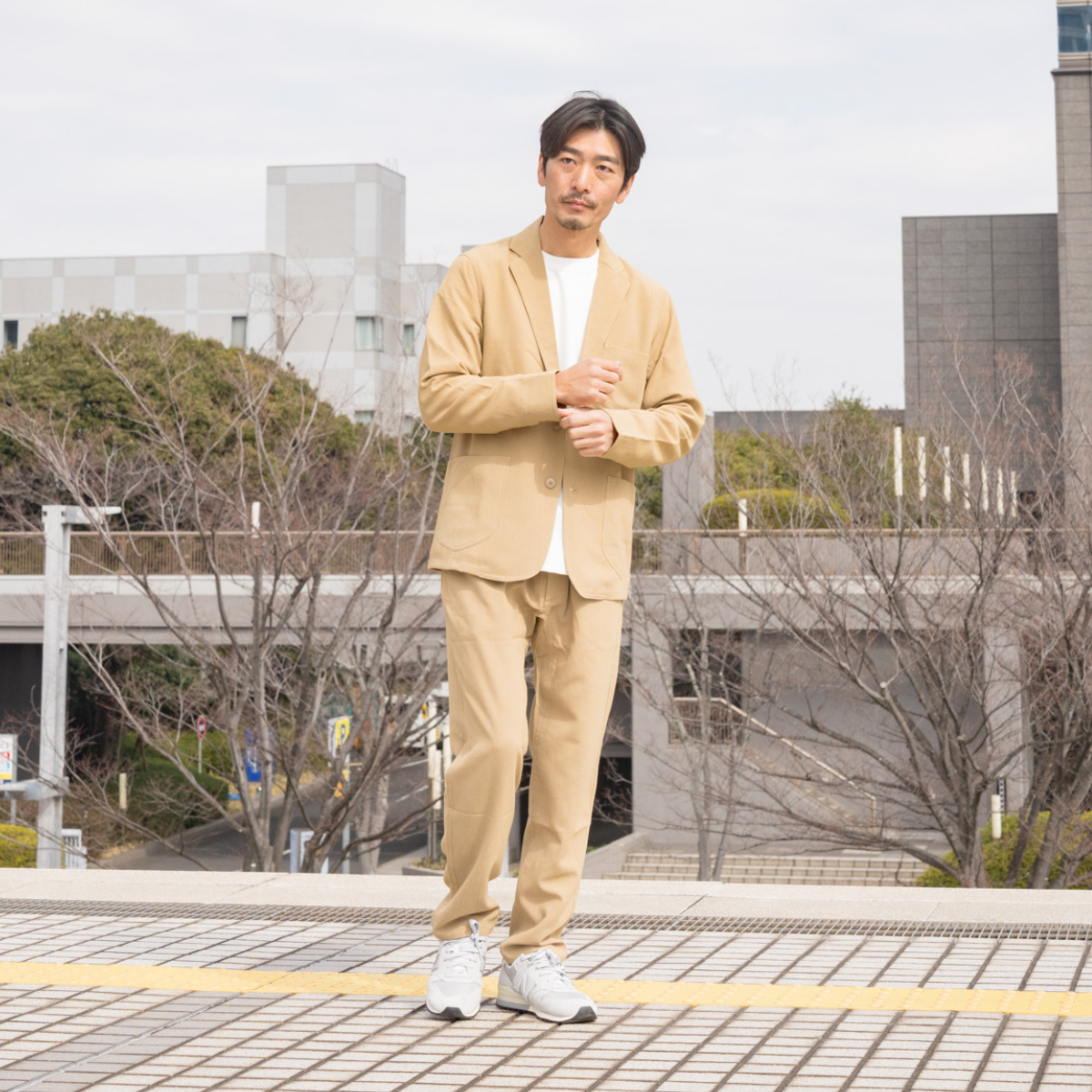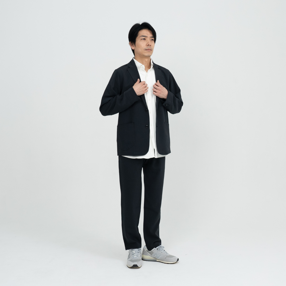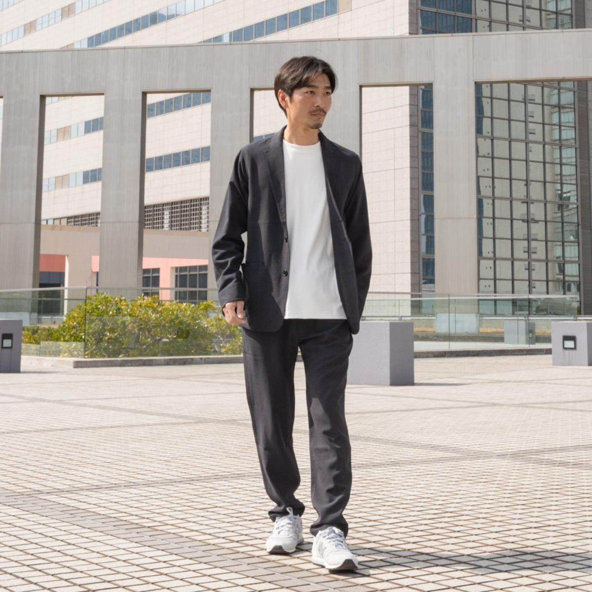 ストレッチが効いて動きやすく、シワも目立ちにくいから、一日中ストレスフリー。