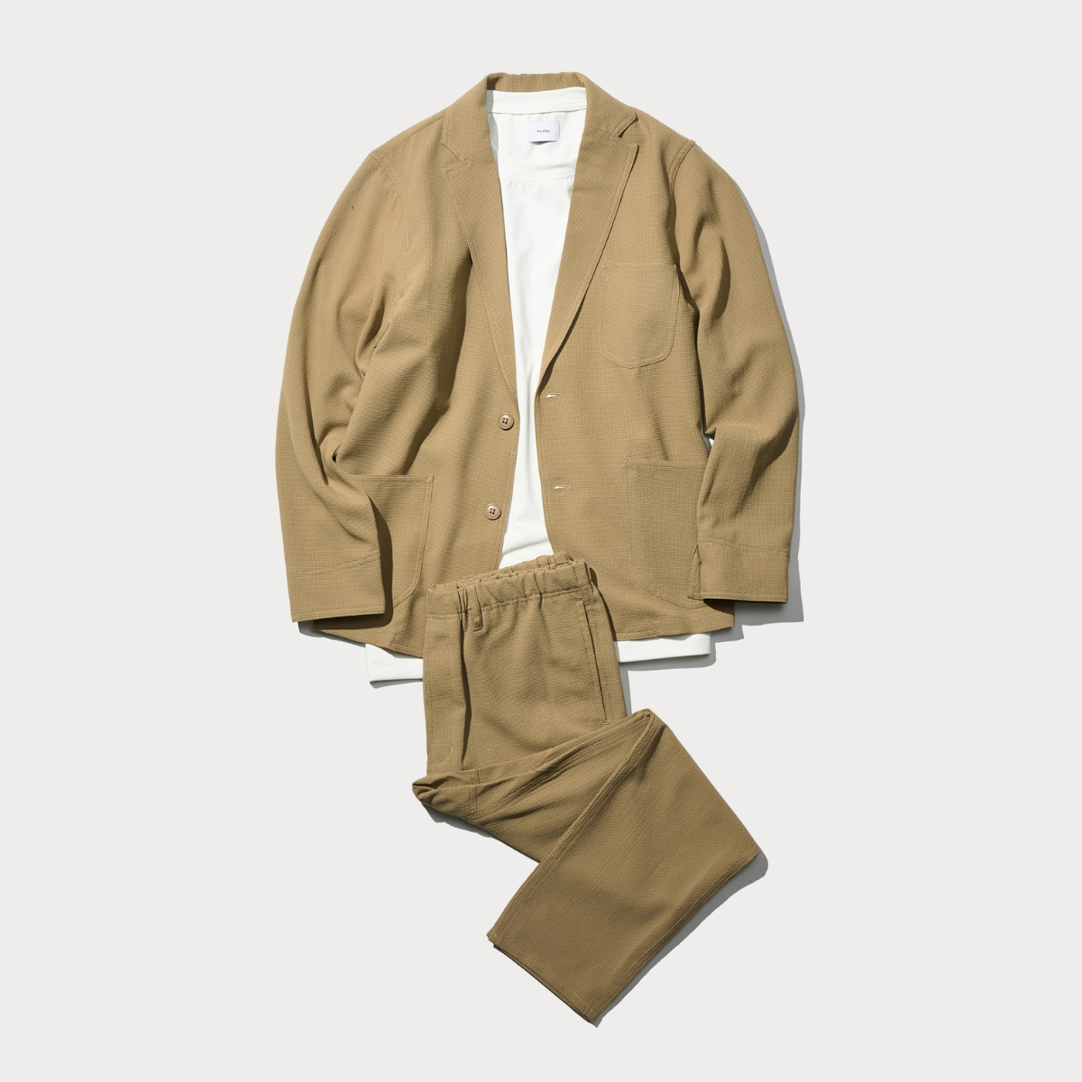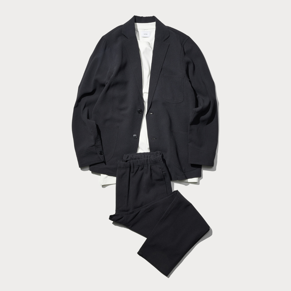 シアサッカー素材ならではの凹凸が、肌に張り付かない涼しい着心地と、さりげないこなれ感を生み出します。